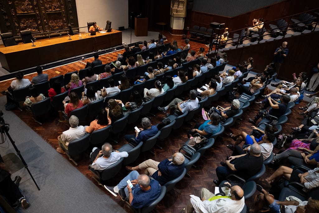 Mauricio Zunino (intendente de Montevideo), Mercedes Clara (directora de Desarrollo Social) y Virginia Cardozo (directora de Salud) fueron algunas de las autoridades presentes durante un encuentro que contó, además, con representantes de la academia, trabajadores y trabajadoras de la salud, otros especialistas e integrantes de organizaciones sociales.